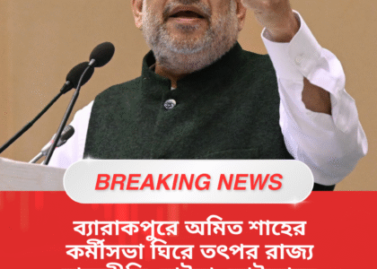 লোকসভা নির্বাচনের আগে পশ্চিমবঙ্গে রাজনৈতিক উত্তাপ ক্রমেই বাড়ছে। সেই আবহেই শনিবার উত্তর ২৪ পরগনার ব্যারাকপুরে দলীয় কর্মীদের নিয়ে গুরুত্বপূর্ণ সভা করলেন কেন্দ্রীয় স্বরাষ্ট্রমন্ত্রী ও বিজেপির সর্বভারতীয় কৌশলবিদ অমিত শাহ। আনন্দপুরী ময়দানে অনুষ্ঠিত এই কর্মীসভাকে ঘিরে সকাল থেকেই তৎপরতা ছিল চোখে পড়ার মতো।