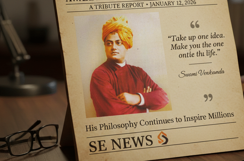 স্বামী বিবেকানন্দের জন্মবার্ষিকীতে SE News তাঁর স্মৃতির প্রতি গভীর শ্রদ্ধা জানিয়ে এই অঙ্গীকার করে—তাঁর আদর্শকে সমাজের প্রতিটি স্তরে পৌঁছে দেওয়ার।