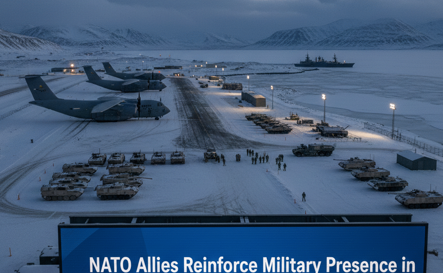 Greenland has emerged as a new focal point of global strategic attention as European NATO allies move to strengthen their military presence in the Arctic region. The development comes amid growing geopolitical competition, heightened security concerns, and increased activity by major world powers in the Arctic, a region rapidly gaining importance due to climate change and emerging sea routes.