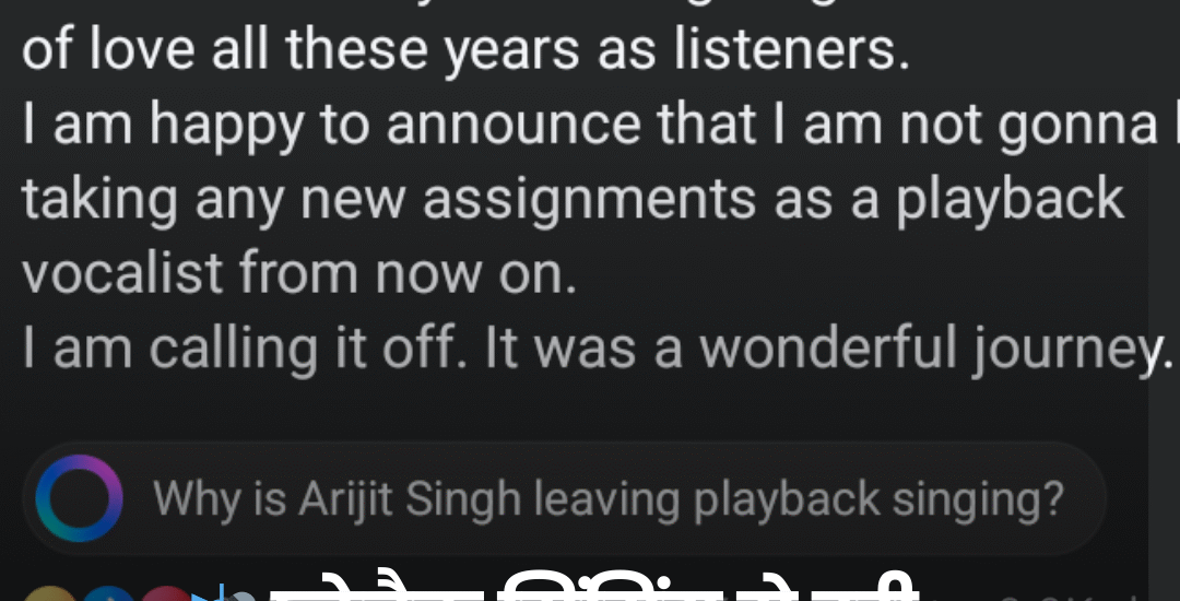 अपने संदेश में अरिजीत सिंह ने श्रोताओं के प्रति गहरी कृतज्ञता व्यक्त करते हुए कहा कि बीते कई वर्षों में उन्हें जो अपार प्रेम और समर्थन मिला है, वह उनके जीवन की सबसे बड़ी उपलब्धि रही है। उन्होंने यह भी कहा कि प्लेबैक सिंगिंग के रूप में उनकी यह यात्रा बेहद खूबसूरत रही, लेकिन अब वह इस अध्याय को यहीं समाप्त करना चाहते हैं।