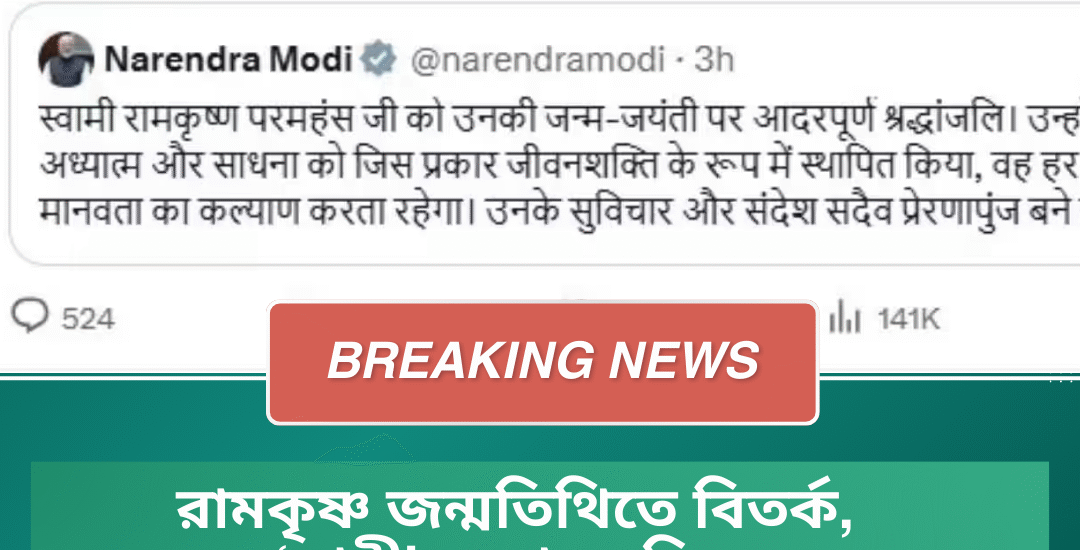 কলকাতা: শ্রীশ্রী Ramakrishna Paramahamsa-র জন্মতিথি উপলক্ষে রাজ্যে বিভিন্ন স্থানে পালিত হল বিশেষ অনুষ্ঠান। এই আবহেই সম্বোধন ঘিরে শুরু হল রাজনৈতিক বিতর্ক। প্রধানমন্ত্রী Narendra Modi সামাজিক মাধ্যমে শ্রদ্ধা জানাতে গিয়ে ‘স্বামী রামকৃষ্ণ পরমহংস’ লিখেছেন— আর তা নিয়েই কড়া প্রতিক্রিয়া জানালেন মুখ্যমন্ত্রী Mamata Banerjee।