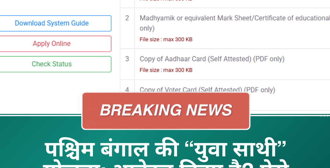 पश्चिम बंगाल सरकार की “युवा साथी” योजना के तहत आवेदन करने वाले लाखों युवाओं के लिए अहम अपडेट सामने आया है। अब आवेदक घर बैठे ऑनलाइन यह जांच सकते हैं कि उनका आवेदन स्वीकार (Approved) हुआ है, लंबित (Pending) है या अस्वीकृत (Rejected) कर दिया गया है।