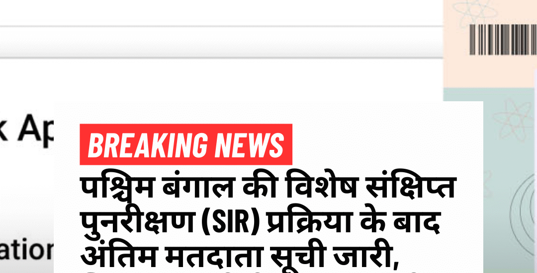 कोलकाता, 28 फरवरी 2026: पश्चिम बंगाल में विशेष संक्षिप्त पुनरीक्षण (Special Intensive Revision – SIR) की प्रक्रिया पूरी होने के बाद अंतिम मतदाता सूची जारी कर दी गई है। Election Commission of India ने शुक्रवार दोपहर आधिकारिक रूप से सूची प्रकाशित की। आगामी विधानसभा चुनाव से पहले इसे एक महत्वपूर्ण प्रशासनिक कदम माना जा रहा है।