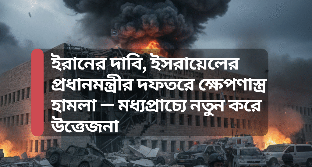 মধ্যপ্রাচ্যে ইরান-ইসরায়েল সংঘাত ঘিরে উত্তেজনা আরও এক ধাপ বৃদ্ধি পেল। ইরানের ইসলামিক রেভল্যুশনারি গার্ড কর্পস (আইআরজিসি) দাবি করেছে, তারা ইসরায়েলের প্রধানমন্ত্রী Benjamin Netanyahu-এর দফতরকে লক্ষ্য করে ক্ষেপণাস্ত্র হামলা চালিয়েছে। যদিও এই দাবি এখনও পর্যন্ত ইসরায়েলের পক্ষ থেকে আনুষ্ঠানিকভাবে নিশ্চিত করা হয়নি।