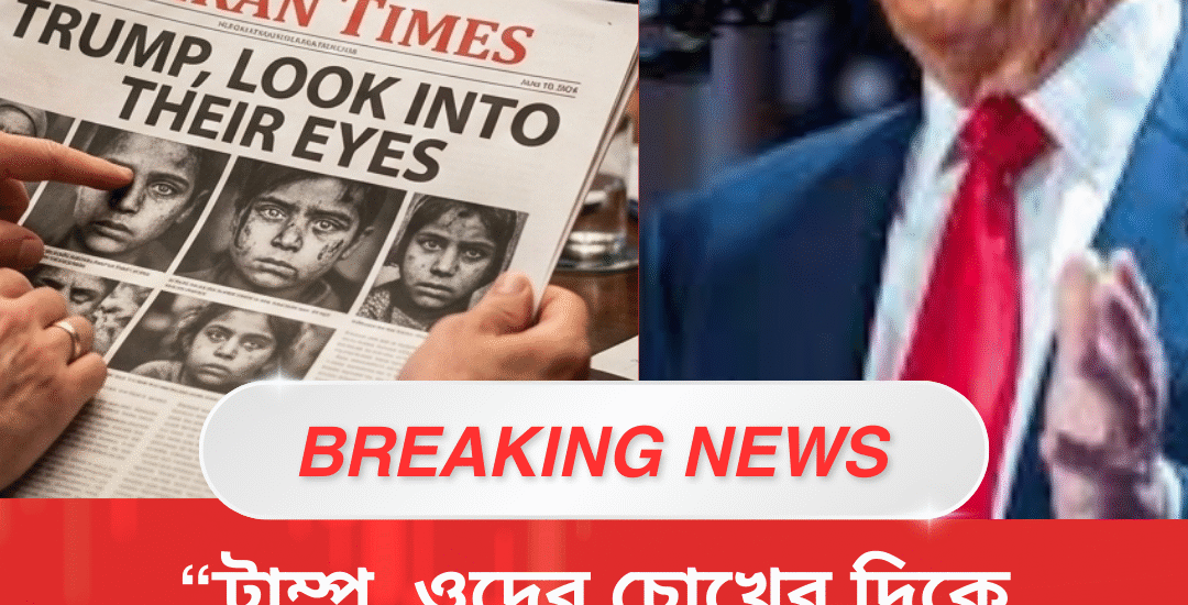 মার্কিন যুক্তরাষ্ট্র, ইরান এবং ইসরায়েলের মধ্যে চলতে থাকা উত্তেজনার আবহে নতুন করে আন্তর্জাতিক বিতর্কের সৃষ্টি করেছে ইরানের ইংরেজি ভাষার সংবাদপত্র Tehran Times-এর একটি প্রথম পাতা। নিহত শিশুদের ছবি প্রকাশ করে মার্কিন প্রেসিডেন্ট ডোনাল্ড ট্রাম্পকে উদ্দেশ করে বড় শিরোনাম দেওয়া হয়েছে— “Trump, Look Them in the Eyes”। এই শিরোনাম ঘিরে ইতিমধ্যেই বিশ্বজুড়ে ব্যাপক আলোচনা শুরু হয়েছে।