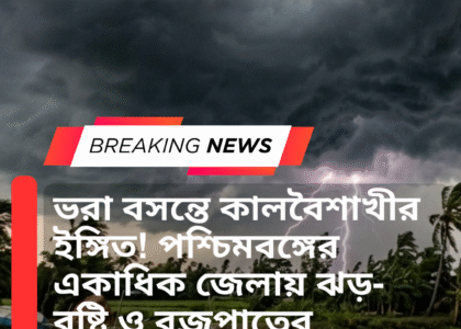 ভরা বসন্তে কালবৈশাখীর ইঙ্গিত! পশ্চিমবঙ্গের একাধিক জেলায় ঝড়-বৃষ্টি ও বজ্রপাতের সতর্কতা