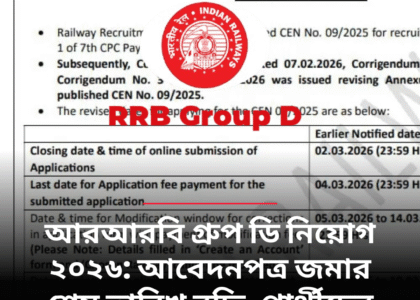 আরআরবি গ্রুপ ডি নিয়োগ ২০২৬: আবেদনপত্র জমার শেষ তারিখ বৃদ্ধি, প্রার্থীদের জন্য বড় স্বস্তি