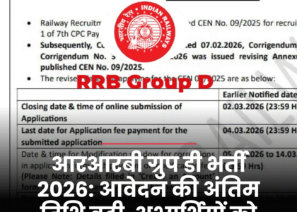 आरआरबी ग्रुप डी भर्ती 2026: आवेदन की अंतिम तिथि बढ़ी, अभ्यर्थियों को बड़ी राहत