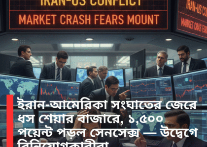 শিরোনাম: ইরান-আমেরিকা সংঘাতের জেরে ধস শেয়ার বাজারে, ১,৫০০ পয়েন্ট পড়ল সেনসেক্স — উদ্বেগে বিনিয়োগকারীরা
