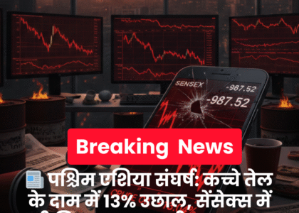 📰 पश्चिम एशिया संघर्ष: कच्चे तेल के दाम में 13% उछाल, सेंसेक्स में बड़ी गिरावट — भारतीय बाजार पर जोरदार प्रभाव