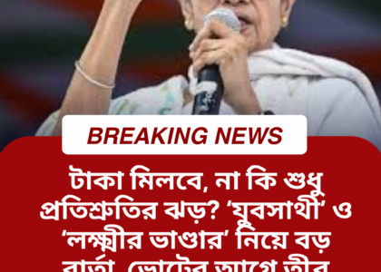 টাকা মিলবে, না কি শুধু প্রতিশ্রুতির ঝড়? ‘যুবসাথী’ ও ‘লক্ষ্মীর ভাণ্ডার’ নিয়ে বড় বার্তা, ভোটের আগে তীব্র রাজনৈতিক সুর