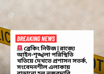 ржХрж▓ржХрж╛рждрж╛, ржЖржЬ тАУ ржкрж╢рзНржЪрж┐ржоржмржЩрзНржЧрзЗ ржЖржЗржи-рж╢рзГржЩрзНржЦрж▓рж╛ ржкрж░рж┐рж╕рзНржерж┐рждрж┐ рж╕рзНржмрж╛ржнрж╛ржмрж┐ржХ рж░рж╛ржЦрждрзЗ ржкрзНрж░рж╢рж╛рж╕ржи рж╕рж░рзНржмрзЛржЪрзНржЪ рж╕рждрж░рзНржХрждрж╛ржпрж╝ рж░ржпрж╝рзЗржЫрзЗред рж╕рж╛ржорзНржкрзНрж░рждрж┐ржХ ржкрж░рж┐рж╕рзНржерж┐рждрж┐рж░ ржкрзНрж░рзЗржХрзНрж╖рж┐рждрзЗ рж░рж╛ржЬрзНржпрзЗрж░ ржмрж┐ржнрж┐ржирзНржи рж╕ржВржмрзЗржжржирж╢рзАрж▓ ржПрж▓рж╛ржХрж╛ржпрж╝ ржиржЬрж░ржжрж╛рж░рж┐ ржЖрж░ржУ ржЬрзЛрж░ржжрж╛рж░ ржХрж░рж╛ рж╣ржпрж╝рзЗржЫрзЗред ржкрзБрж▓рж┐рж╢ ржУ ржкрзНрж░рж╢рж╛рж╕ржирзЗрж░ ржкржХрзНрж╖ ржерзЗржХрзЗ ржЬрж╛ржирж╛ржирзЛ рж╣ржпрж╝рзЗржЫрзЗ, ржХрзЛржиржУ ржзрж░ржирзЗрж░ ржЕржкрзНрж░рзАрждрж┐ржХрж░ ржШржЯржирж╛ рж░рзБржЦрждрзЗ ржЖржЧрж╛ржо ржмрзНржпржмрж╕рзНржерж╛ ржирзЗржУржпрж╝рж╛ рж╣ржЪрзНржЫрзЗред