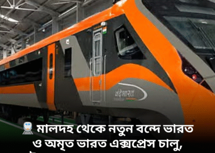 মালদহ: পশ্চিমবঙ্গের রেল পরিকাঠামোয় আরও এক গুরুত্বপূর্ণ সংযোজন। আজ থেকে মালদহ স্টেশন হয়ে নতুন বন্দে ভারত স্লিপার এক্সপ্রেস ও অমৃত ভারত এক্সপ্রেস ট্রেন পরিষেবা চালু হল। এই নতুন ট্রেন পরিষেবার ফলে উত্তরবঙ্গের সঙ্গে রাজ্যের অন্যান্য অংশ ও দেশের গুরুত্বপূর্ণ শহরগুলির যোগাযোগ আরও দ্রুত ও আধুনিক হবে বলে মনে করছে রেল দফতর।