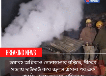 শীতের সন্ধ্যায় আতঙ্ক ছড়াল কলকাতার পূর্ব প্রান্তে। নোনাডাঙা বস্তি এলাকায় ভয়াবহ অগ্নিকাণ্ডে মুহূর্তের মধ্যে দাউদাউ করে জ্বলতে থাকে একের পর এক ঝুপড়ি ঘর। শনিবার সন্ধ্যা নাগাদ এই অগ্নিকাণ্ডের ঘটনা ঘটে, যার জেরে গোটা এলাকা কালো ধোঁয়ায় ঢেকে যায় এবং চরম আতঙ্ক ছড়িয়ে পড়ে স্থানীয় বাসিন্দাদের মধ্যে।