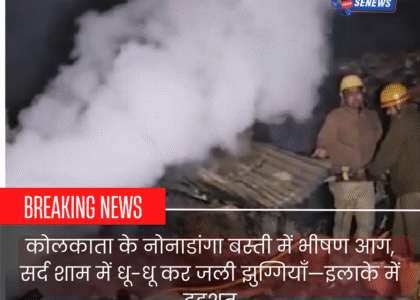पश्चिम बंगाल की राजधानी कोलकाता में शनिवार शाम उस समय अफरा-तफरी मच गई, जब नोनाडांगा बस्ती इलाके में भीषण आग लग गई। सर्द मौसम के बीच अचानक लगी इस आग ने देखते ही देखते विकराल रूप धारण कर लिया और एक के बाद एक कई झुग्गियाँ जलकर राख हो गईं। आग की ऊँची लपटों और काले धुएँ से पूरा इलाका ढक गया।