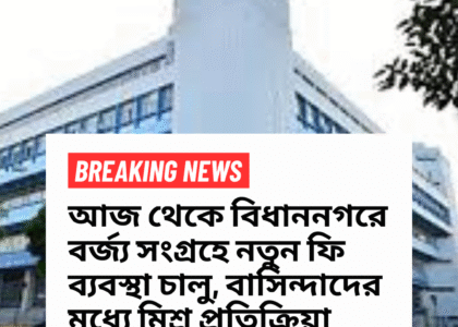 কলকাতা:আজ থেকে বিধাননগর পুরসভা এলাকায় গৃহস্থালি ও বাণিজ্যিক বর্জ্য সংগ্রহের ক্ষেত্রে নতুন ফি ব্যবস্থা কার্যকর