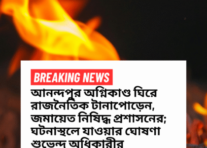 কলকাতার আনন্দপুরে সাম্প্রতিক অগ্নিকাণ্ডকে কেন্দ্র করে রাজ্য রাজনীতিতে তীব্র উত্তাপ ছড়িয়েছে। একদিকে যখন প্রশাসনের তরফে তদন্ত ও নিরাপত্তা ব্যবস্থার উপর জোর দেওয়া হচ্ছে, অন্যদিকে এই ঘটনাকে কেন্দ্র করে সরব হয়েছে বিরোধী শিবির। পরিস্থিতি সামাল দিতে ঘটনাস্থল ও তার পার্শ্ববর্তী এলাকায় জমায়েতের উপর নিষেধাজ্ঞা জারি করেছে প্রশাসন।