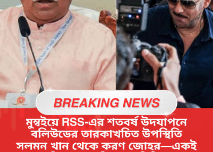 রাষ্ট্রীয় স্বয়ংসেবক সংঘ (RSS)-এর ১০০ বছর পূর্তি উপলক্ষে মুম্বইয়ে আয়োজিত বিশেষ অনুষ্ঠানে নজর কাড়ল বলিউডের একাধিক তারকার উপস্থিতি। দুই দিনের এই আয়োজন ঘিরে বিনোদন জগতের পাশাপাশি রাজনৈতিক ও সামাজিক মহলেও শুরু হয়েছে জোর আলোচনা। সাধারণত যেসব তারকাকে পর্দার বাইরে রাজনৈতিক বা আদর্শগত মঞ্চে খুব একটা দেখা যায় না, সেই সব পরিচিত মুখের উপস্থিতি এই অনুষ্ঠানকে আরও বেশি আলোচনার কেন্দ্রে এনে দিয়েছে।