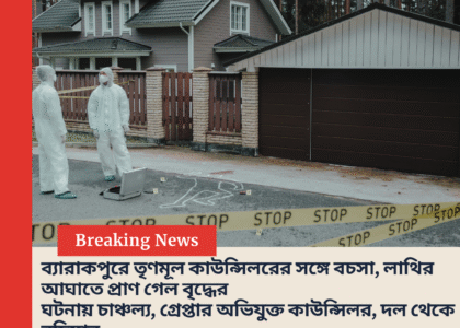 উত্তর ২৪ পরগনার ব্যারাকপুরে এক মর্মান্তিক ঘটনায় রাজনৈতিক মহলে ও সাধারণ মানুষের মধ্যে তীব্র চাঞ্চল্যের সৃষ্টি হয়েছে। অভিযোগ, স্থানীয় তৃণমূল কংগ্রেসের এক কাউন্সিলরের লাথির আঘাতে মৃত্যু হয়েছে এক বৃদ্ধের। মৃত ব্যক্তির বয়স প্রায় ৮০ বছরের কাছাকাছি। ঘটনার পরই অভিযুক্ত কাউন্সিলরকে গ্রেপ্তার করেছে পুলিশ এবং দলীয় স্তর থেকেও তাঁর বিরুদ্ধে কড়া পদক্ষেপ নেওয়া হয়েছে।