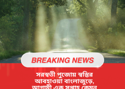 সরস্বতী পুজোর সময় রাজ্যবাসীর জন্য স্বস্তির খবর। পশ্চিমবঙ্গ জুড়ে আগামী কয়েক দিন আবহাওয়া মোটের উপর মনোরম ও শুষ্ক থাকবে, এমনটাই জানাচ্ছে আবহাওয়া দপ্তর। বড় কোনও শৈত্যপ্রবাহ বা ঝড়-বৃষ্টির আশঙ্কা নেই বলেই জানানো হয়েছে, ফলে পুজোর আয়োজন ও ভ্রমণে বিশেষ বাধা আসার সম্ভাবনা কম।