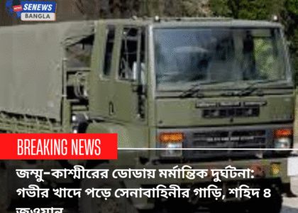 জম্মু-কাশ্মীরের দুর্গম পার্বত্য এলাকায় ফের মর্মান্তিক দুর্ঘটনা। ডোডা জেলার ভাদেরওয়াহ-চাম্বা সড়কের খান্নি টপ এলাকায় ভারতীয় সেনাবাহিনীর একটি গাড়ি নিয়ন্ত্রণ হারিয়ে গভীর খাদে পড়ে যায়। এই দুর্ঘটনায় চারজন সেনা জওয়ান শহিদ হয়েছেন, আহত হয়েছেন আরও কয়েকজন।