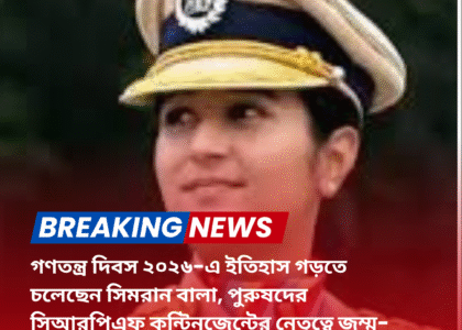 আগামী ২৬ জানুয়ারি, গণতন্ত্র দিবস ২০২৬—এই দিনে দিল্লির কর্তব্যপথে ভারতের সামরিক ও আধাসামরিক শক্তির প্রদর্শনের মধ্যেই সাক্ষী থাকবে দেশ এক ঐতিহাসিক মুহূর্তের। প্রথমবারের জন্য সিআরপিএফ-এর সম্পূর্ণ পুরুষ কন্টিনজেন্টের নেতৃত্ব দেবেন এক মহিলা অফিসার। এই বিরল সম্মান পেয়েছেন জম্মু-কাশ্মীরের তরুণ অফিসার সিমরান বালা।
