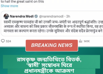 এদিকে বিজেপির একাংশের দাবি, প্রধানমন্ত্রী যথাযোগ্য শ্রদ্ধা জানিয়েছেন এবং ‘স্বামী’ শব্দটি সম্মানসূচক হিসেবেই ব্যবহৃত হয়েছে। তাঁদের বক্তব্য, এই বিষয়টিকে অযথা রাজনৈতিক রূপ দেওয়া হচ্ছে। যদিও তৃণমূল নেতৃত্বের মতে, সাংস্কৃতিক পরম্পরা ও আঞ্চলিক অনুভূতির বিষয়টি হালকাভাবে নেওয়া উচিত নয়।
