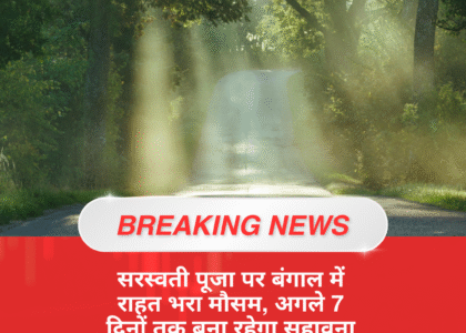 рд╕рд░рд╕реНрд╡рддреА рдкреВрдЬрд╛ рдХреЗ рдЕрд╡рд╕рд░ рдкрд░ рдкрд╢реНрдЪрд┐рдо рдмрдВрдЧрд╛рд▓ рдХреЗ рд▓реЛрдЧреЛрдВ рдХреЗ рд▓рд┐рдП рдЕрдЪреНрдЫреА рдЦрдмрд░ рд╣реИред рдореМрд╕рдо рд╡рд┐рднрд╛рдЧ рдХреЗ рдЕрдиреБрд╕рд╛рд░, рдкреВрд░реЗ рд░рд╛рдЬреНрдп рдореЗрдВ рдореМрд╕рдо рдХреБрд▓ рдорд┐рд▓рд╛рдХрд░ рд╕рд╛рдл, рд╢реБрд╖реНрдХ рдФрд░ рд╕реБрдЦрдж рдмрдирд╛ рд░рд╣реЗрдЧрд╛ред рди рддреЛ рдХрдбрд╝рд╛рдХреЗ рдХреА рдардВрдб рдХрд╛ рдкреНрд░рдХреЛрдк рд╣реИ рдФрд░ рди рд╣реА рдмрд╛рд░рд┐рд╢ рдпрд╛ рдХрд┐рд╕реА рдмрдбрд╝реЗ рдореМрд╕рдореАрдп рдмрджрд▓рд╛рд╡ рдХреА рдЖрд╢рдВрдХрд╛ред
