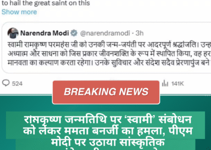 рд░рж╛ржордХреГрд╖реНрдг рдЬрдиреНрдорддрд┐рдерд┐ рдкрд░ тАШрд╕реНрд╡рд╛рдореАтАЩ рд╕рдВрдмреЛрдзрди рдХреЛ рд▓реЗрдХрд░ рдордорддрд╛ рдмрдирд░реНрдЬреА рдХрд╛ рд╣рдорд▓рд╛, рдкреАрдПрдо рдореЛрджреА рдкрд░ рдЙрдард╛рдпрд╛ рд╕рд╛рдВрд╕реНрдХреГрддрд┐рдХ рдЕрд╕рдВрд╡реЗрджрдирд╢реАрд▓рддрд╛ рдХрд╛ рдЖрд░реЛрдк